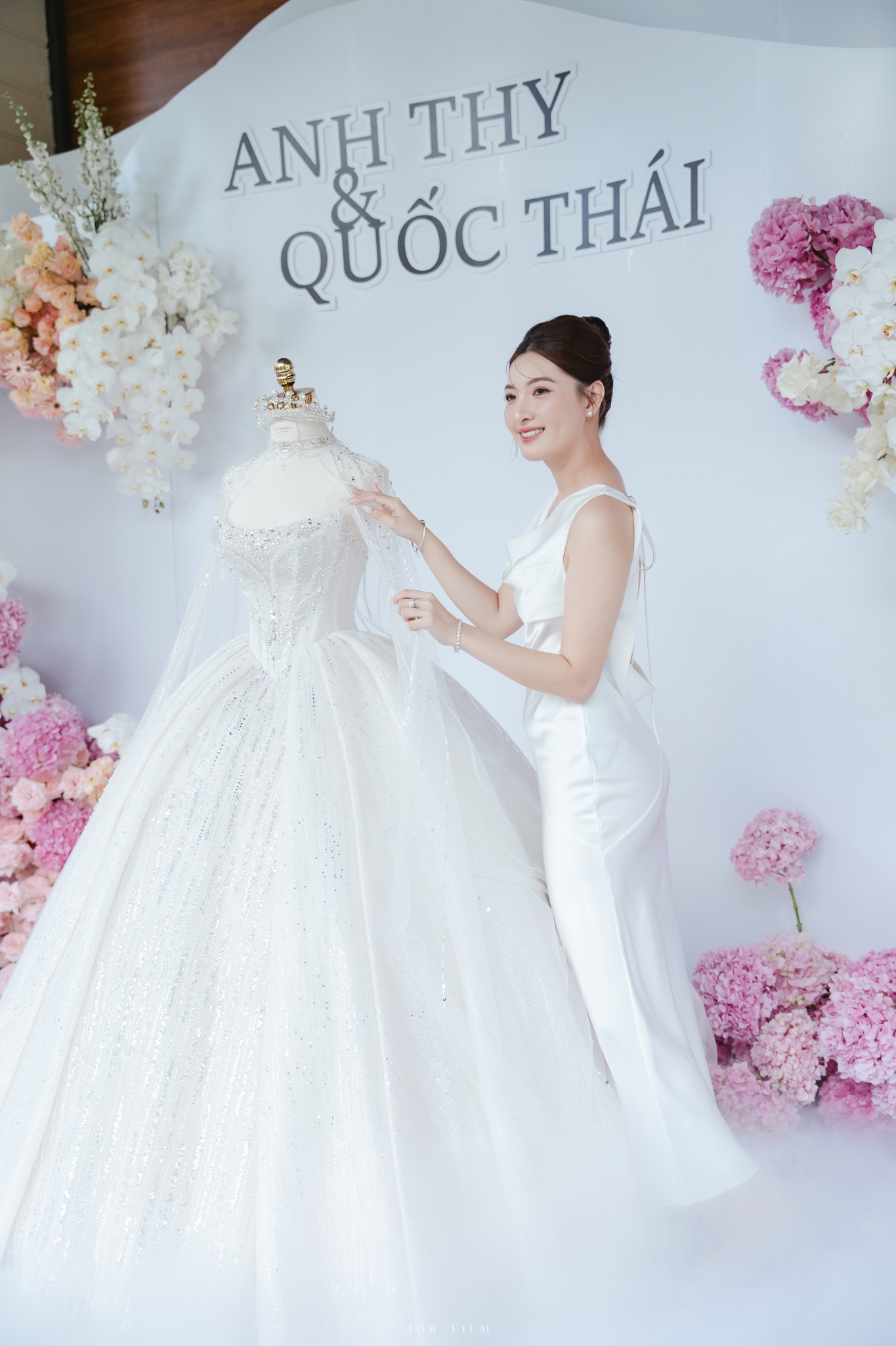 Có những khoảnh khắc trong cuộc đời mà bạn chỉ cần nhắm mắt lại cũng có thể cảm nhận được. Đó là khi ánh nhìn của người ấy tìm đến bạn, dịu dàng mà nồng nàn, khi từng lời hứa thầm lặng hóa thành sự thật – rằng bạn đã yêu đúng người, và người ấy cũng chọn yêu bạn đến trọn đời. Với Anh Thy, ngày cưới không chỉ là một dấu mốc, mà còn là khoảnh khắc thiêng liêng để cô nàng kể câu chuyện tình yêu của mình qua chiếc váy cưới lộng lẫy.