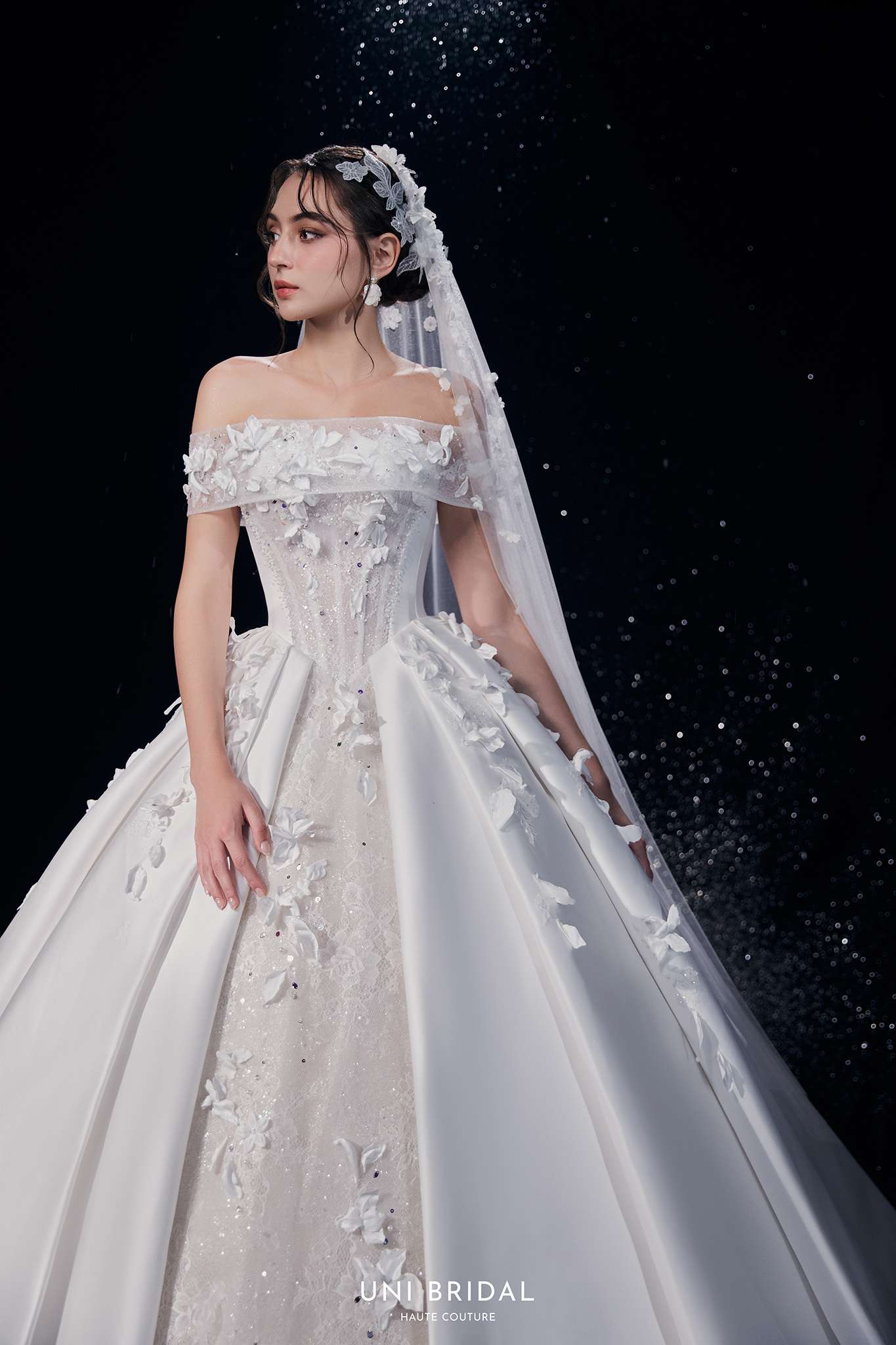 Váy cưới mùa đông tại Uni Bridal lấy cảm hứng từ sự giao thoa giữa sự thanh tao cùng vẻ đẹp huyền bí, giúp cô dâu tỏa sáng giữa khung cảnh thơ mộng của mùa lễ hội.