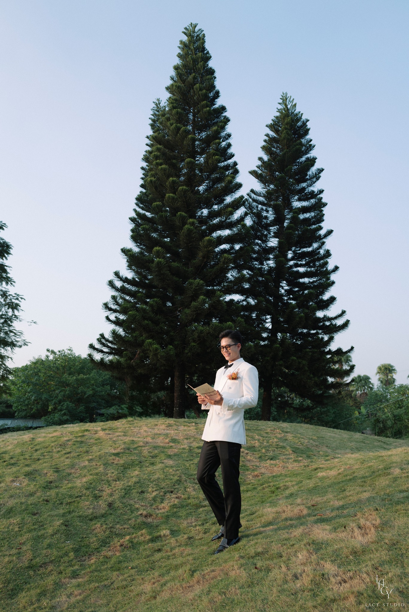 Chú rể Minh Hoàng lịch lãm trong bộ suit cùng tone