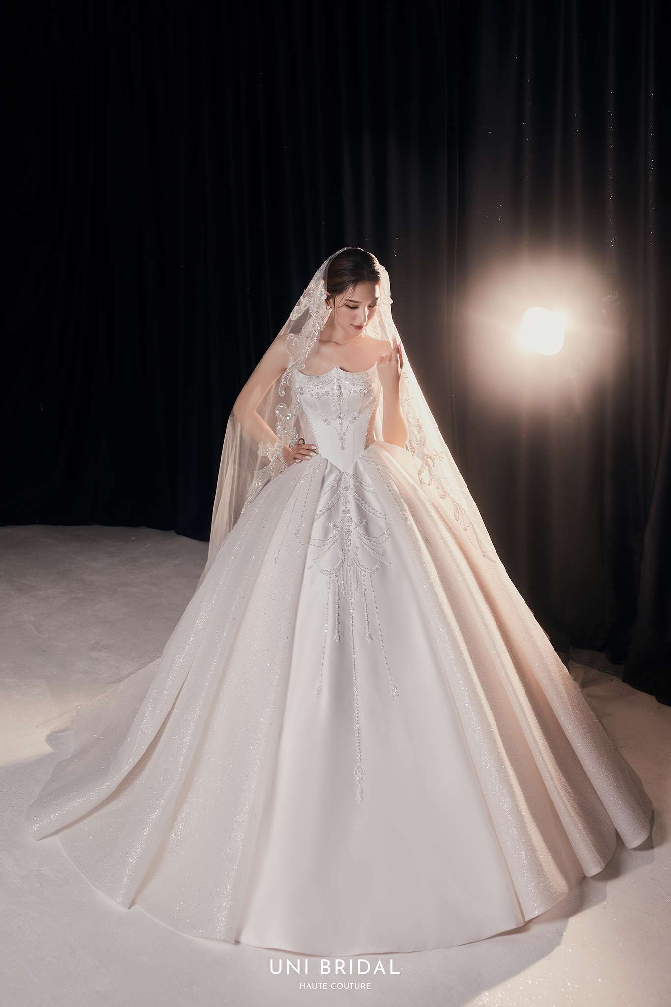 Uni Bridal không chỉ mang đến những thiết kế váy cưới, mà còn giúp cô dâu vẽ nên câu chuyện tình yêu của riêng mình. Từ những chất liệu cao cấp như satin, ren, lụa đến kỹ thuật may đo tinh xảo, mỗi chiếc váy đều là sự hòa quyện giữa nghệ thuật và cảm xúc.